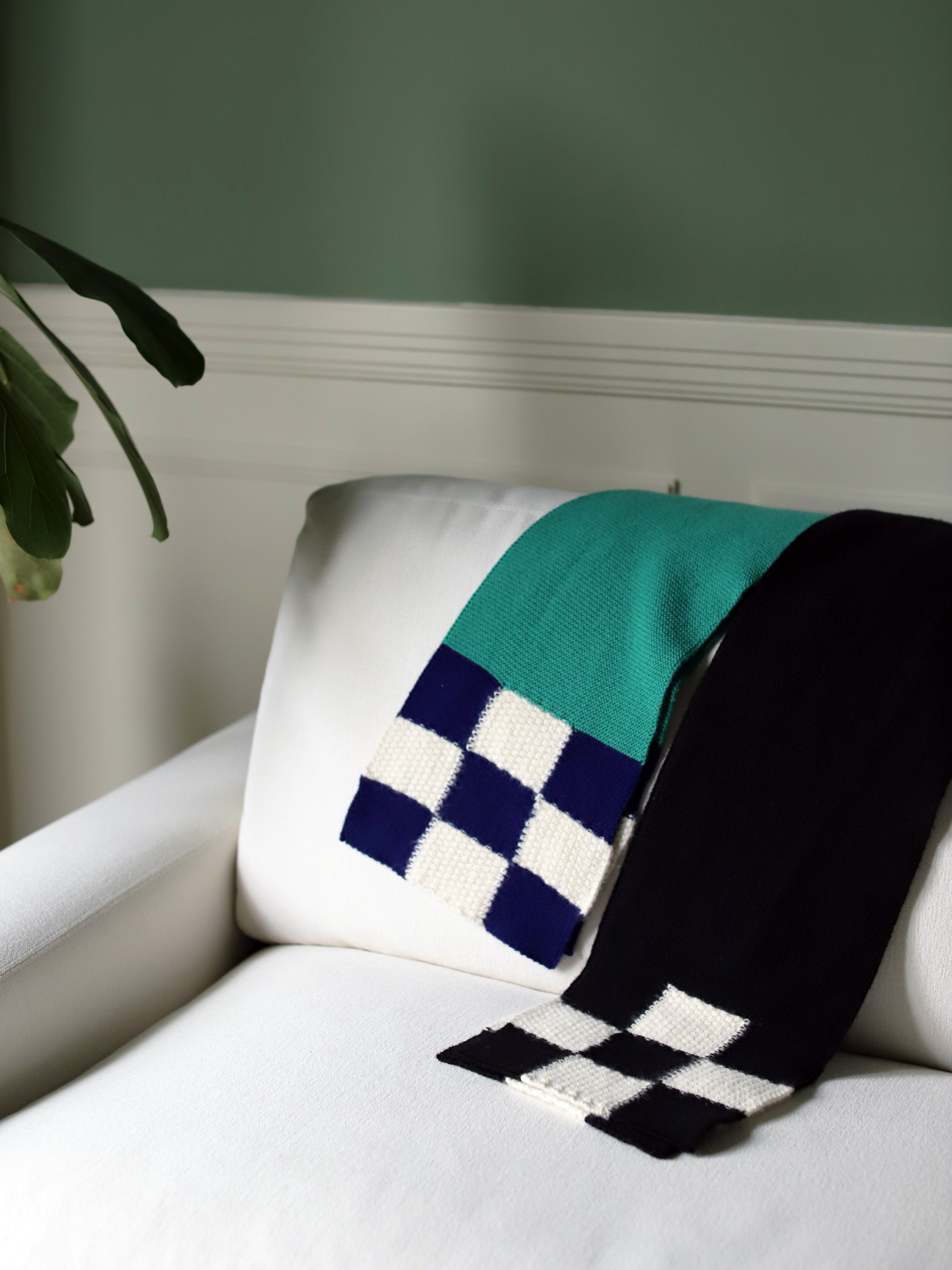 Mosaic Merino Wool & Alpaca Scarf in Black Chequer
